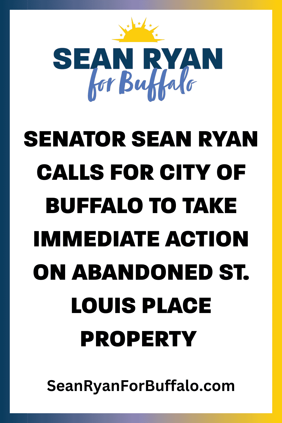 "As Mayor, I will take immediate action to change the way Buffalo responds to neglectful property owners,” Ryan said. "Buffalo needs leadership that prioritizes safe, healthy neighborhoods. That’s exactly what I plan to do.