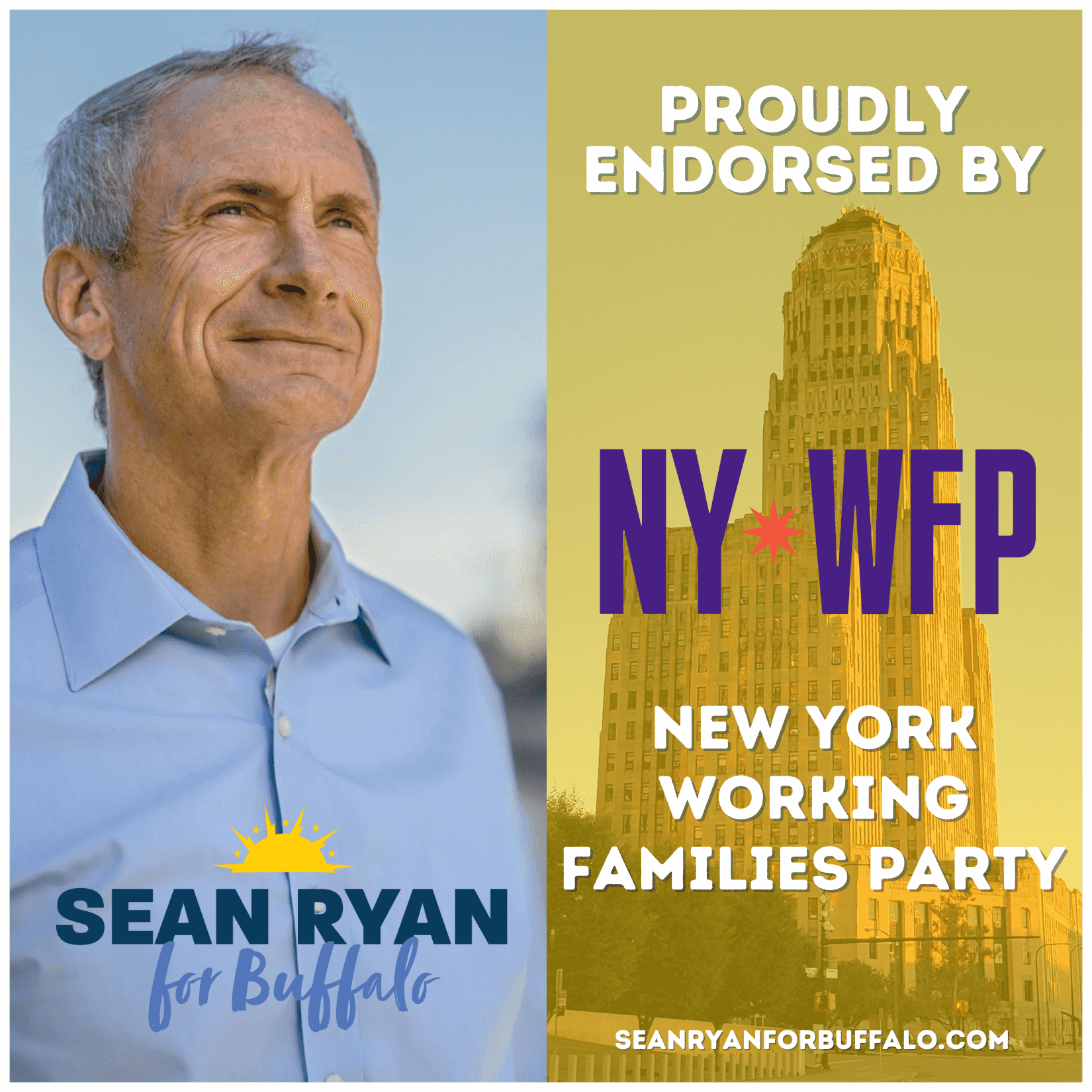 “The New York Working Families Party is proud to stand with Sean Ryan’s campaign for Mayor of Buffalo, NY. We have supported Sean’s campaign for State Senator, and we know him to be a tenacious fighter for working families. In uncertain and tough times for New Yorkers, Buffalo deserves a mayor like Sean Ryan, who will stand strong with unions and working families, and against Trump’s chaos and fear. We’re excited to join Sean in bringing a bold, transformative vision to Buffalo.” said Ana María Archila and Jasmine Gripper, Co-Directors, New York Working Families Party.